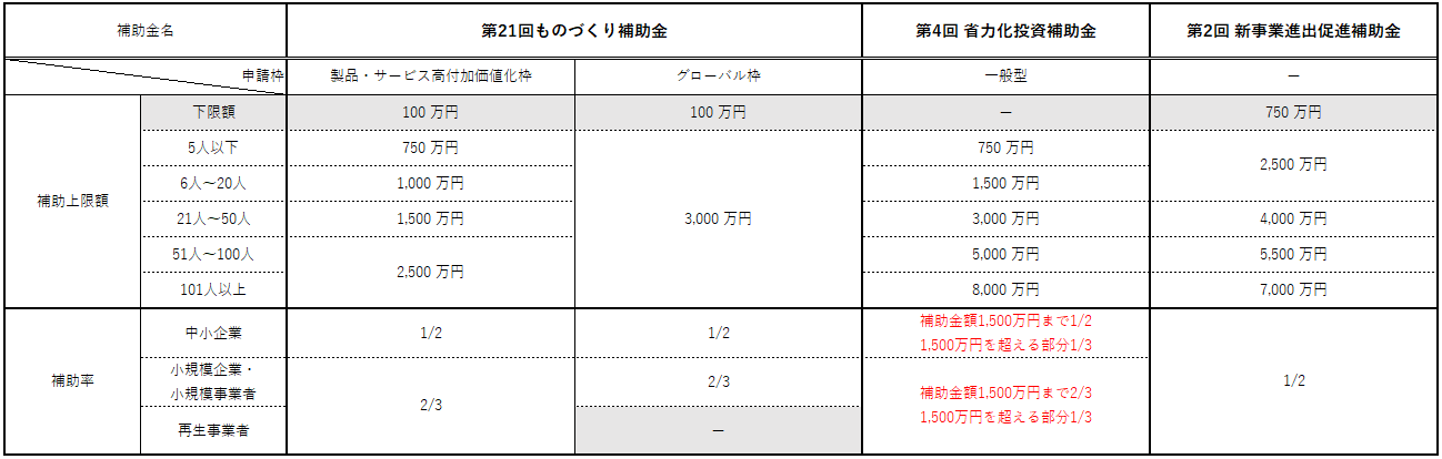なお、申請をご検討される場合は、必ず各補助金の最新の公募要領をご確認ください。